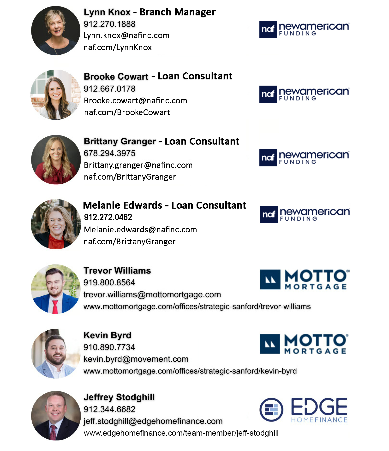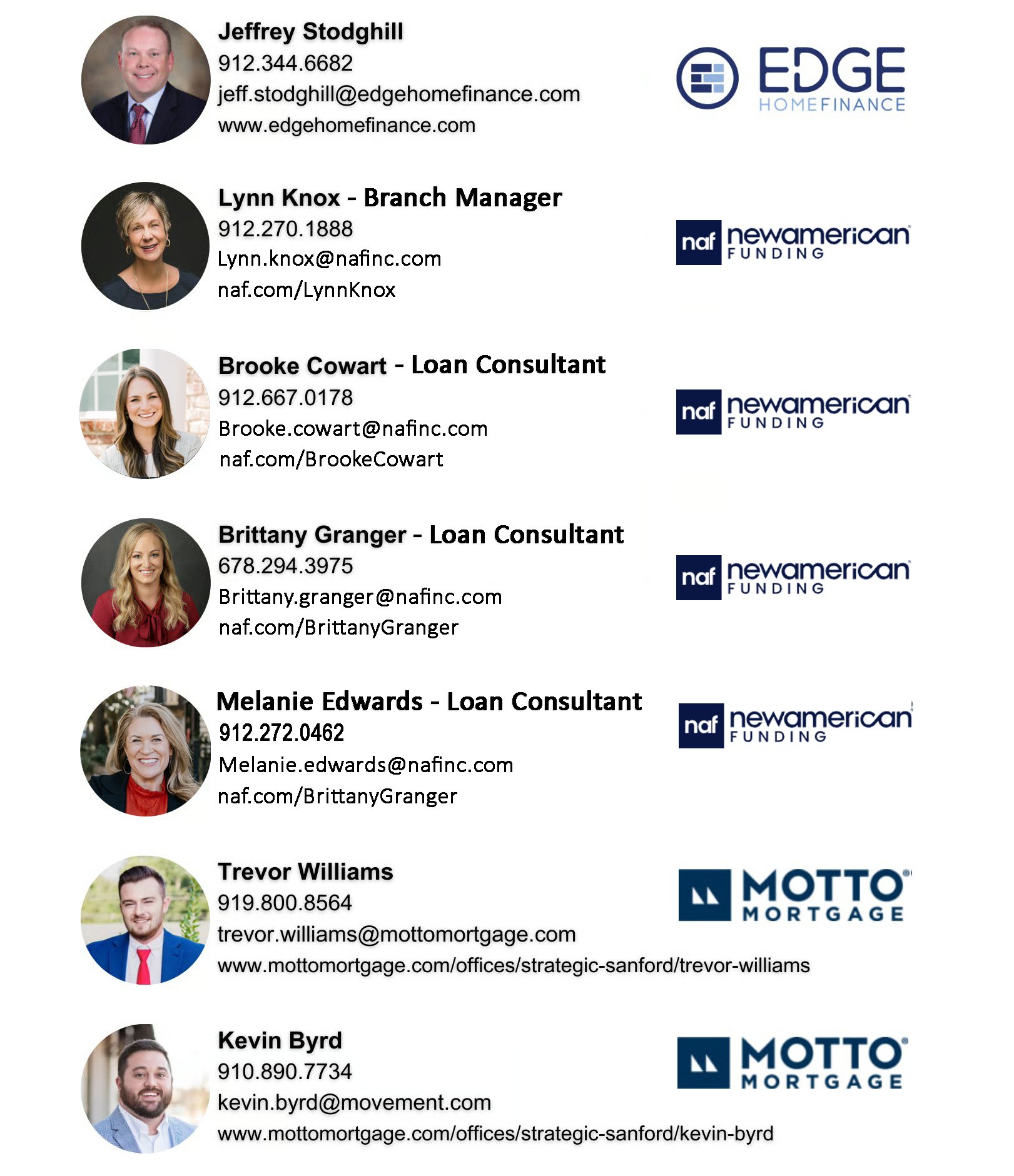 Our team of local financing professionals is ready to guide you through the home buying process. We are committed to fast, professional, courteous and personal service to help you understand and feel at ease throughout the home buying process. Our trained and certified loan originators specialize in financing homes in the Savannah Area area real estate market. We are prepared to find the right loan program with competitive rates and low down payments for you.